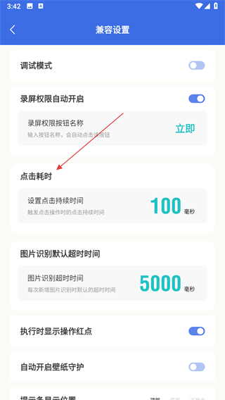 3、通过设置可以设置全局的点击间隔,触摸时长,重复次数。