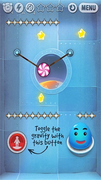 风靡全球的《割断绳子》来啦!游戏的目标很简单,就是合理的切割绳子,让小怪物吃到糖果即可过关,但是要想得到高评价,就要想办法吃到所有的星星,加入了这个条件之后,游戏就变得有些难了哦,不过仔细研究一下就会发现,可以利用气球等道具把星星全部吃到,具体的就要靠你自己去发现咯!