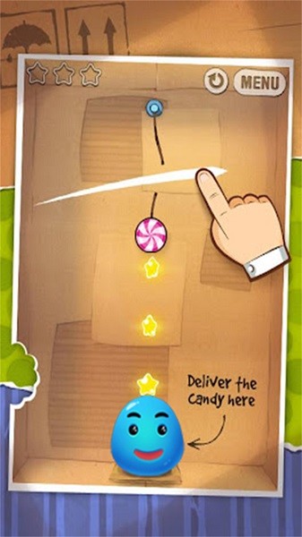 2、游戏的操作非常的简单,一只手就能操作了,切绳子也是很简单的操作,体验无限的快乐;