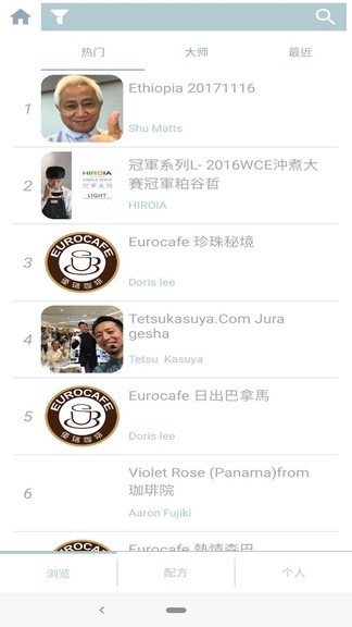 配方浏览功能,可让用户在线浏览经典的咖啡冲煮配方;