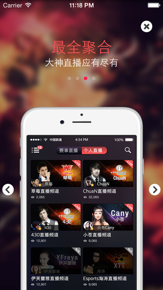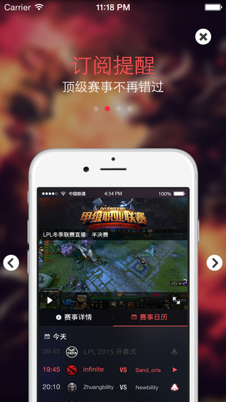 2.直播:全球顶级电竞赛事在线看直播,并提供一键订阅提醒,精彩赛事再不错过;聚合热门电竞明星及大神第一视角在线直播,随时随地更多选择。