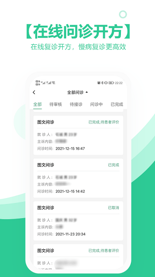 【患者管理】线上复诊,远程开方,患者定期咨询不受疫情影响。