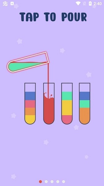 3、尝试将不同色彩的水进行兑换,变化其中的颜色,完成更多的挑战。