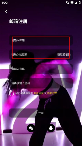 2、点击输入框,输入邮箱,点击获取验证码,输入收到的验证码。
