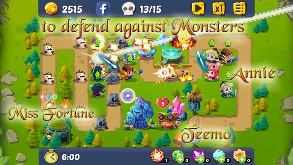 英雄联盟塔防(league of hero defenders)是一款经典玩法的塔防类的游戏,游戏的故事情节发生在虚构的魔法王国,以正义战胜邪恶这一永恒定律为基本理念,囊括了魔幻、友情、复仇、自我提升等多种元素,英雄可从商店购买道具进行自我装备,大大提高了游戏的可玩性。游戏中,各种英雄联盟的人物供玩家选择。与传统塔防不一样的地方的还有,英雄还有独自的技能触发。当英雄杀怪升级之后还有额外的升级。