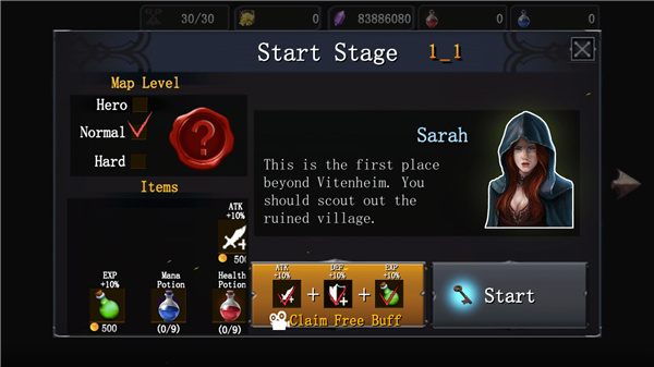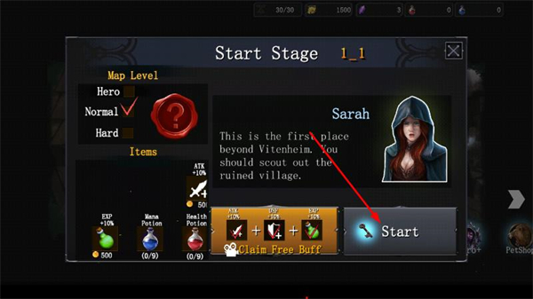 2、在关卡准备界面确认设置后,点击Start,进入关卡的战斗环节。