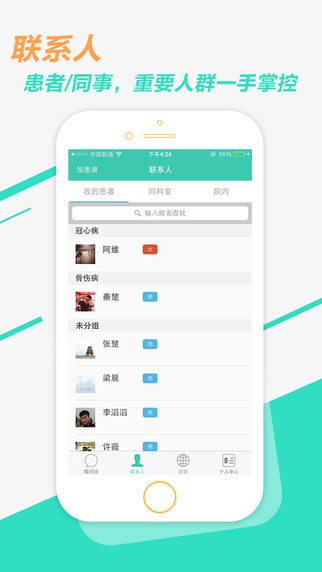 「联系人」 重要联系人群轻松浏览,一手掌握。