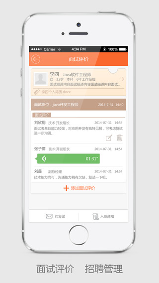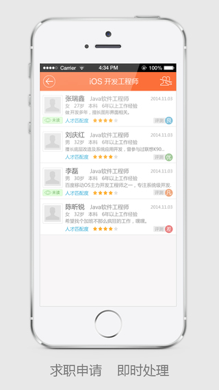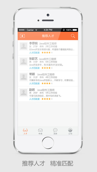 人杰招聘企业版,是为企业招聘人才提供的,浏览职位、关注求职者信息、与求职者进行在线沟通的客户端软件。为减少企业在招聘环节中通过线下方式进行筛选的时间成本,通过线上文字、语音的沟通方式进行初级筛选,同时通过关注关系获得对方发布的信息动态得到更多了解,最终选择到合适的人才。