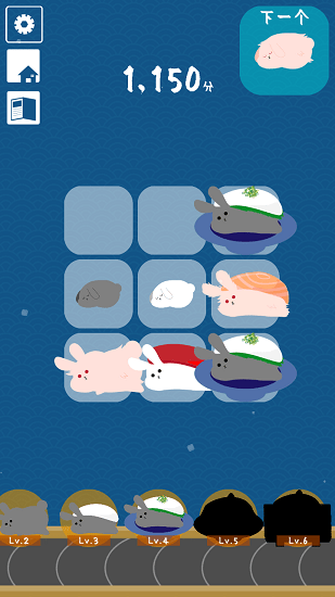 翻转吧兔子寿司游戏是非常好玩的休闲益智类型的手游,在这里玩家们要做的是不断的用饭粒喂养自己的寿司兔子,通过游戏来积攒更多的饭粒进行喂养,不断的升级就能够寿司兔子获得更多的装扮。游戏的玩法只需要不断的进行翻转,将相同颜色的寿司合并到一起,变得越来越大然后消失,就能够得分,超级的好玩。