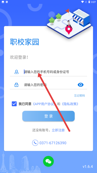 1、在进入到职校家园后,点击弹窗中的同意按钮,开始登录操作。