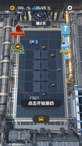 1、点击开始游戏按钮进入对应关卡,关卡场景为带有障碍物和金币的停车区域。
