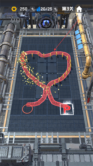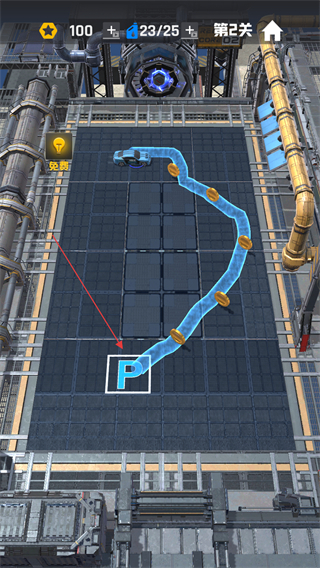 2、规划路线,引导车辆避开障碍、收集金币,最终精准驶入P字停车区域,完成停车任务。