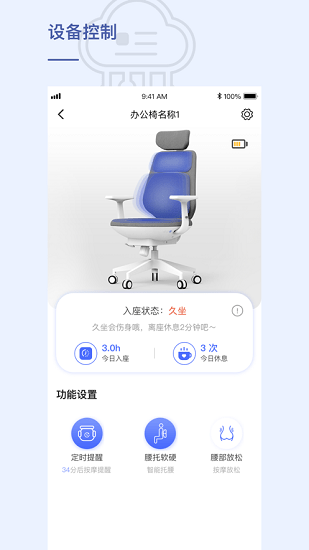 1、针对贝氪智能办公椅开发的移动配套应用,使用这款软件可以快速的连接办公椅;