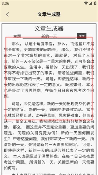 4、生成完成后,可在文章生成器页面查看生成的文章内容。