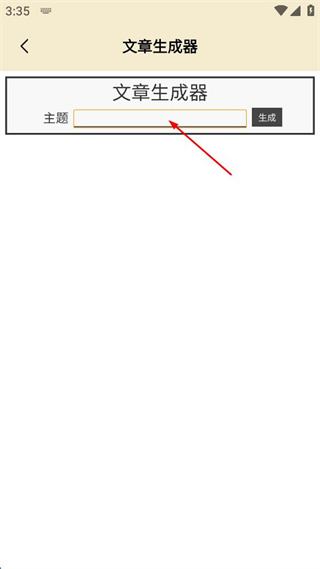 2、在文章生成器页面的主题输入框中输入创作主题,准备生成文章。