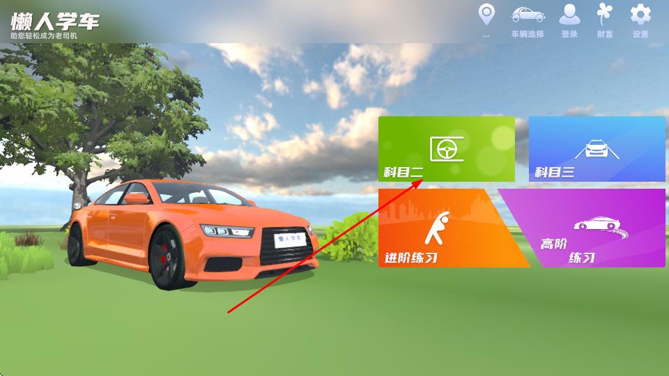 1、打开懒人学车APP,进入主界面,点击科目二选项。