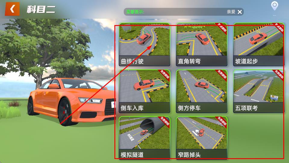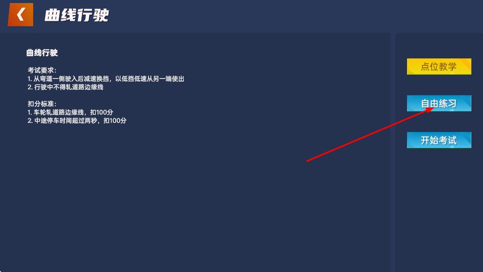 2、进入科目二页面后,选择想要模拟驾驶的项目,如曲线行驶。