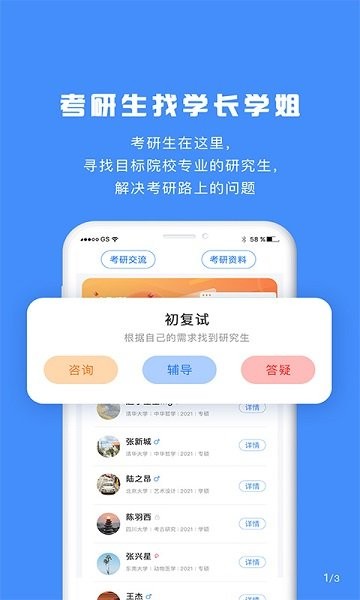 研究生帮考研app给用户带来的考研学习的服务软件,通过平台可以帮助用户找到目标院校的学长学姐等给你相关的考研经历,给你相关的指南让你更好的进行考研的准备,有需要的用户就来下载试试吧!