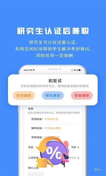 研究生认证后,系统根据研究生的学校专业年级自动显示收益情况。