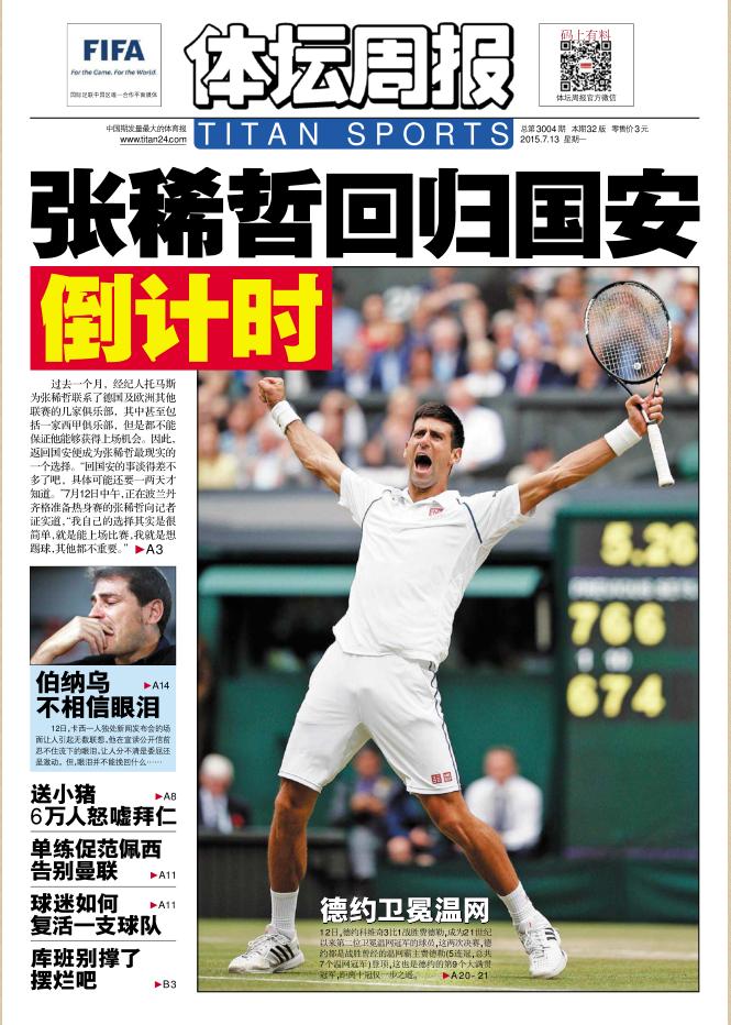 体坛周报2015年7月13日PDF高清版,小编推荐《张稀哲回归国安》导读:过了一个月,经纪人托马斯与张稀哲联系了德国及欧洲几大联赛的俱乐部......
