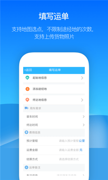 金潮智运app可以随时下单发货运输,提供专业物流服务,支持多种货物类型,输入目的地就可以快速生成订单,超多功能可以体验,软件可以显示最优路线,随时都可以抢单。