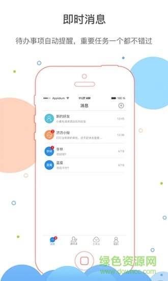 【即时消息】同事间、客户间热聊,无须逐一添加好友,已读未读消息清晰可见;待办事项自动提醒,重要任务一个都不错过。
