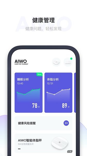 AIWO平台致力于利用物联网(IoT)、大数据、人工智能(AI)、移动互联网等现代化技术,构建数字化精准美丽健康管理平台。AIWO平台帮助用户建立专属的数字生命档案,通过人工智能引擎分析海量生命数据,洞察用户的真实需求,并为用户提供个性化的、科学的、合理的美丽健康解决方案,最终指导用户走向健康和美丽。