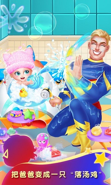 超能小宝宝当然也和所有的宝宝一样可爱,不过可别小看了她的超能力,她不仅拥有奇快的速度,还可以施放火苗把家里搞得一团糟。小宝宝的妈妈是拯救世界的女英雄,穿着超能衣服踏上了新的征程,所以照顾小宝宝的重任全部由爸爸一个人承担。等宝宝终于睡着了,为辛苦了一天的爸爸做个舒适的水疗吧,这真是累并快乐的一天呢!
