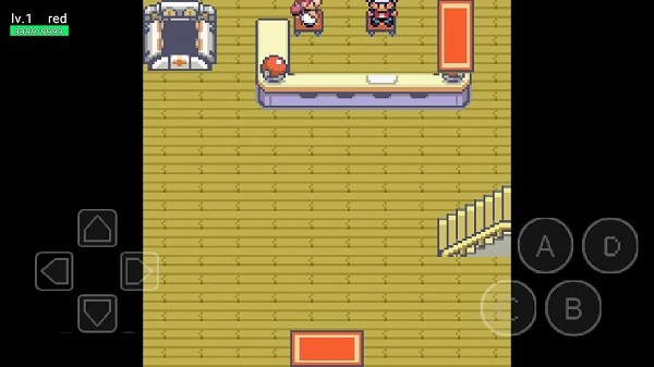 2、来到隔壁的房间,上楼后调查一个精灵球,你的对手就会出现。