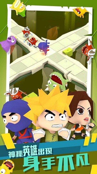 手指滑动屏幕,控制角色向4个方向移动和攻击。消灭的怪兽越多,得分越高。就这么简单。