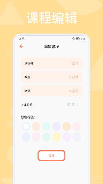 可自定义课程的开始结束时间,录入课程即可快速查看课程备忘。