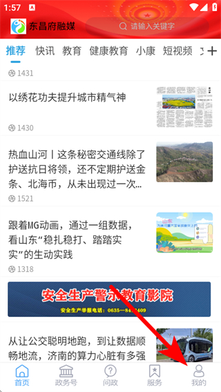 1、打开东昌府融媒APP首页,点击底部我的,进入个人页面。