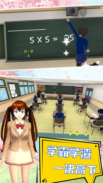 独特的戏玩法,包含许多不同的有趣任务。在这里,您可以享受学生时代的生活,我们向您展示了一个樱花色的浪漫校园,一种全新的模拟校园生活。喜欢动漫的你一定不能错过的精彩画面感,让您体验真实的学校生活。在这里,您可以像学生一样去上课,与学校的朋友享受学校生活和学校时光,并与校园生活中的高中老师见面。