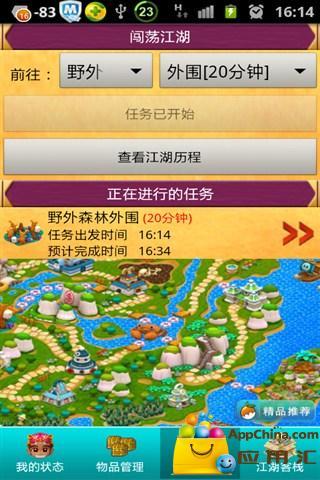 玩家在游戏中还可以点击“闯荡江湖”页面进行接取任务来打怪和冒险等等操作。