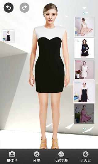 1、试衣间: 模拟真人试穿搭配衣服,搭配效果一目了然。
