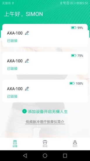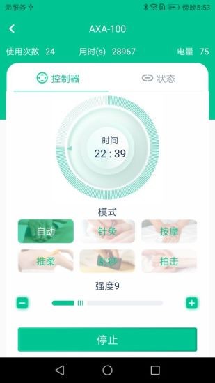 脉冲理疗按摩仪安卓手机版可以和按摩仪配合使用,支持在手机上控制按摩的强度,可以调节模式,自动、按摩、拍击、针灸、推柔等模式可以随意切换,可以同时连接和管理多台设备,同时还可以查看商城里面的产品信息,支持在线购买,欢迎有需要的朋友下载使用!