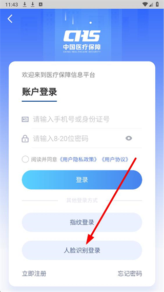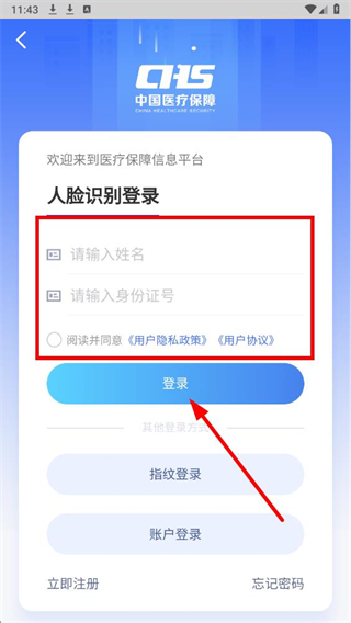 4、在人脸识别登录页面,依次填写信息,勾选协议后点击登录,按提示完成人脸验证即可登录账号。