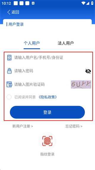 3、输入用户名/手机号/身份证、密码、图片验证码,勾选同意隐私政策后点击登录。