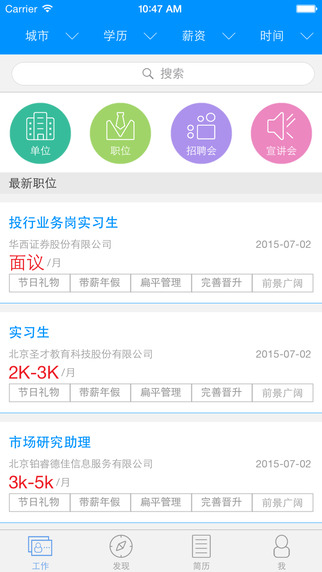 职手可得iPhone版是一款求职应用软件,在该应用中用户可以轻松在线进行求职,应用中有海量求职信息、企业单位信息供求职者查询。应用中更能通过用户关注的公司信息进行个性化订阅,让用户第一时间知道该公司的信息。有需要的用户赶紧下载使用吧~