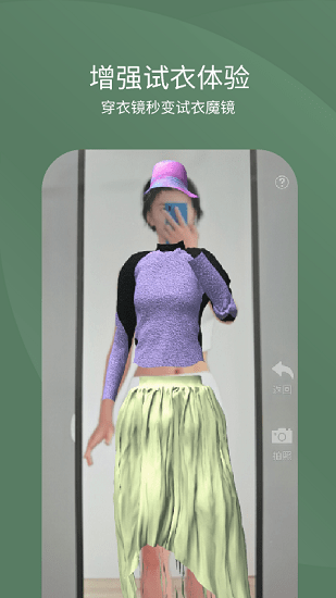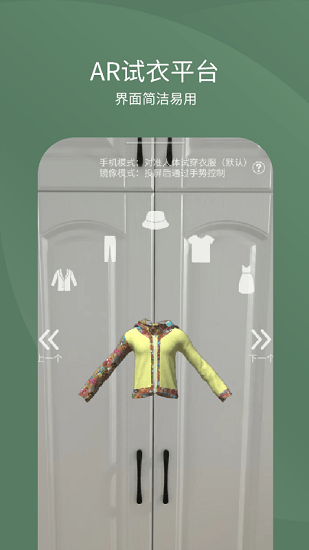 --支持双模式,镜像模式和手机模式,镜像模式利用手机同屏功能,将实时影像同步到大屏,通过姿态控制试穿衣服;手机模式可以拍摄人物实景,给人物试穿衣服,还可以拍摄镜中影像,让普通穿衣镜秒变AR试衣魔镜,更多新奇场景,等你去发现