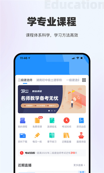 长钢网校app是一个专业的培训软件,用户下载app之后就可以在线搜索需要的课程,丰富的精品课程班等待大家的加入,实用题库帮助大家不断巩固提高,打牢基础。还有非常实用的押题、真题测试模拟帮助大家适应考试环境,赶紧下载长钢网校app开始学习吧。