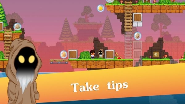 3、帮助角色完成各个关卡的挑战,点击避开危险陷阱。