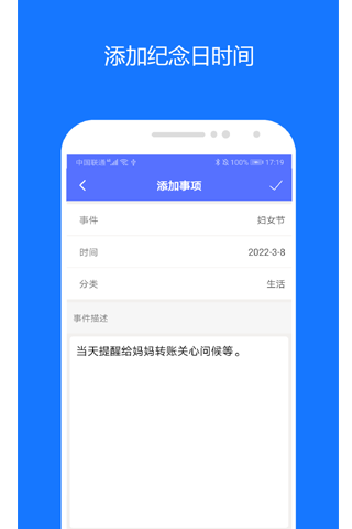 记录某个重要纪念日日期 距离某个纪念日的日期还有多少天。朋友太多记不住每个人的生日时间、结婚纪念日等是什么时候、时间精灵帮你记录并到日期提醒。