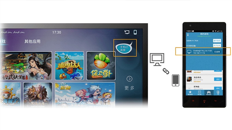 该平台利用了手机触屏的灵活配置,在电视上无障碍使用多点触控类手机游戏,还激活了手机力反馈、重力感应等功能,不仅能畅享大屏电视带来的极致体验,还为用户带来更多的游戏玩法。