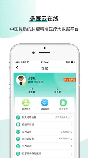 1、医院医生在线办公软件,具备患者管理、医患沟通、开具处方等功能