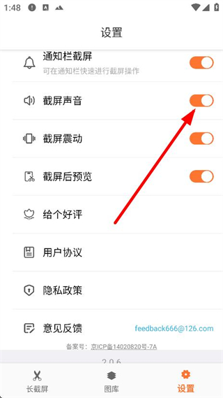 3、找到截屏声音的开关,点击关闭,即可完成操作。
