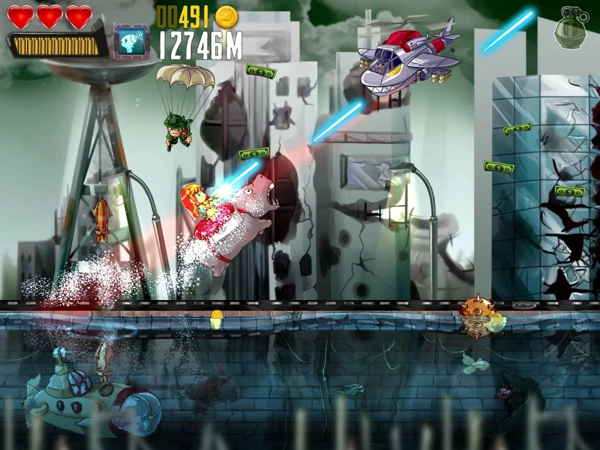 《河道勇士》是一款动作射击和跑酷相结合的游戏,9个独特球员,超强丰富的武器装备,快来和曼波和他的队员们会合,一起向敌人发起进攻!玩家们加入曼波和他的队员们!跳跃,下潜,躲避障碍物并使用各种武器朝敌人开火!玩起来有点像在船上的合金弹头一样,玩起来很带劲,并且针对触屏的操作也极大简化,一个手也能玩。