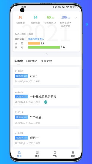 云科税通可以帮助企业管理自己公司的所有研发项目,在线控制研发的费用,进行公司的人员管理,每天都能时刻记录研发的内容,包括设备耗材等信息,帮助企业进行一站式的财务管控,也能及时根据最新的收税政策进行调整,欢迎有需要的朋友下载使用!