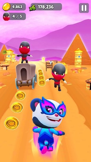 熊猫英雄跑酷(Panda Hero Run)借鉴了经典的地铁跑酷玩法,只不过这一次的主角换成了可爱的熊猫,而且场景也变得更加丰富,可以去到戈壁滩、城市街道等多个地方进行冒险,不同的危险障碍等你来克服,想办法收集金币才能获得高分。