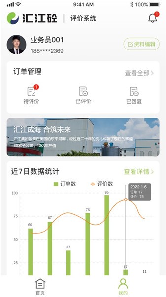 汇江砼app可以提供多种业务员评价方式,查看每日代办人物,提供详细订单信息,了解各种办公方式,可以提供订单管理服务,登记客户信息,查看匿名评价,可以智能统计每月的业务。